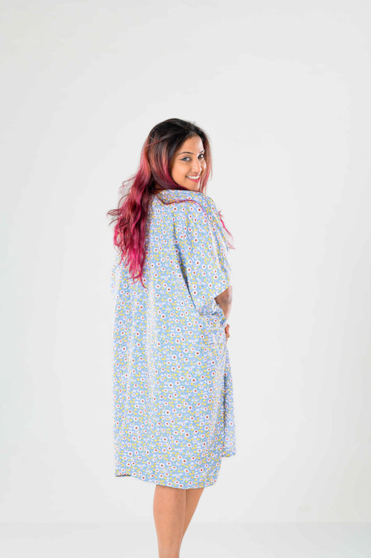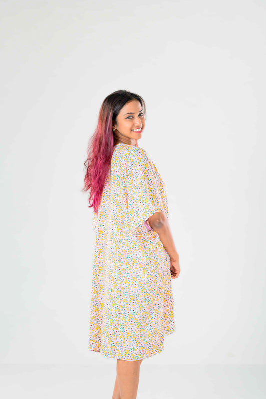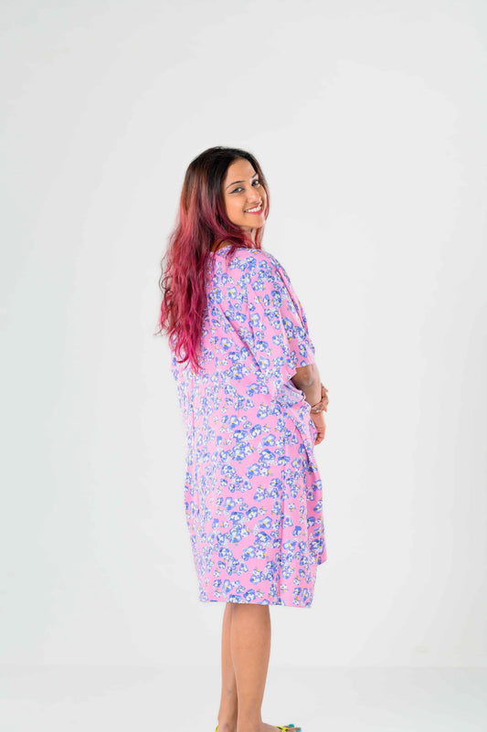 Printed Flower kimono Cover-up (Pink/Yellow)