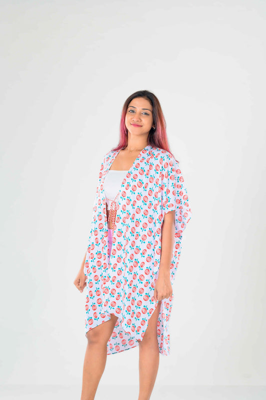 Printed LOLI-POP kimono Cover-up (Cream/Red)